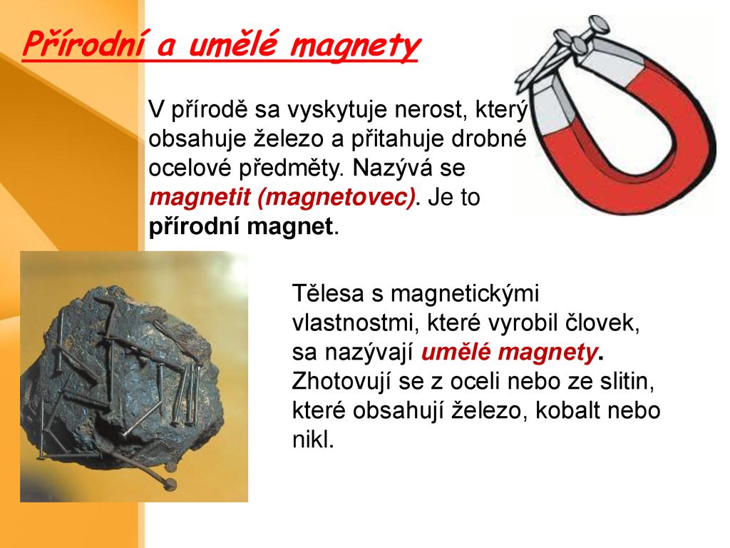 V přírodě se vyskytuje nerost, který obsahuje železo a má zvláštní vlastnosti - přitahuje drobné ocelové