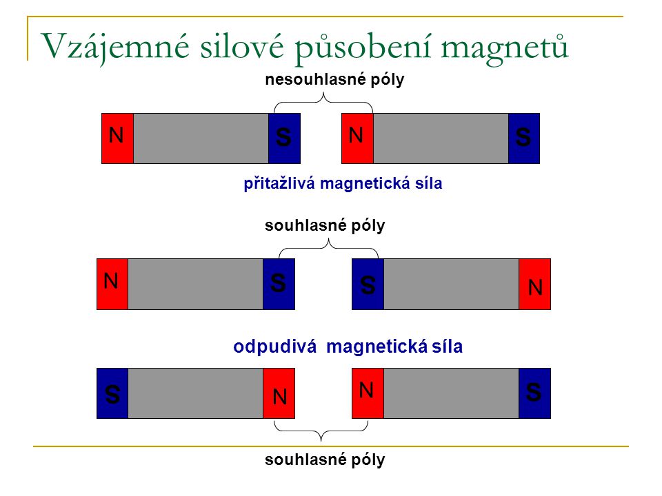 Přiblížíme-li k sobě dva tyčové magnety opačnými póly, budou se přitahovat.