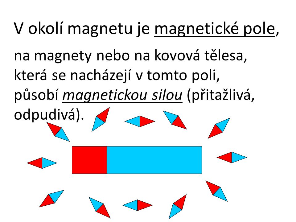 V okolí magnetu je magnetické pole, které se projevuje silovým působením na magnetku a hřebíčky.
