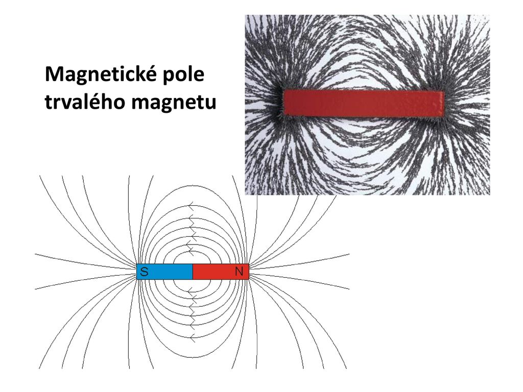 tyčový magnet. Nejdříve jen pólem a pak celý magnet.
