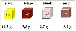 PRVNÍ má objem 1 cm³ a hmotnost 7 g