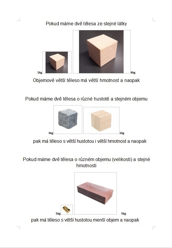 PŘÍKLADY NA VÝPOČET HUSTOTY A VÝPOČET OBJEMU A HMOTNOSTI ZE VZORCE PRO HUSTOTU