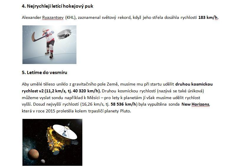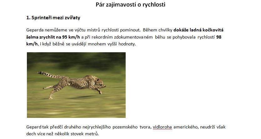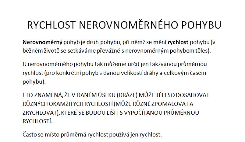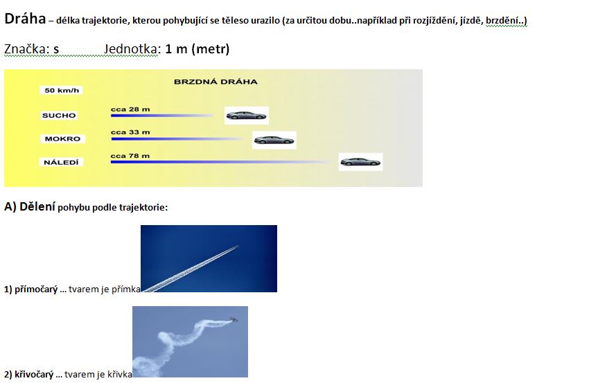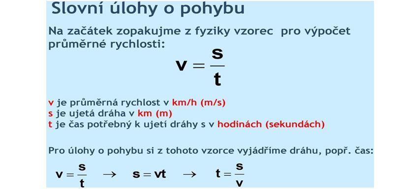 VELIČINA KOMBINUJÍCÍ DRÁHU A ČAS v=s/t