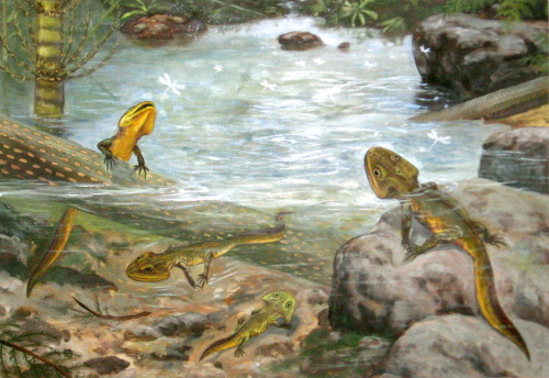 - území stále zaplaveno mořem, vznik mořských usazenin - vápence